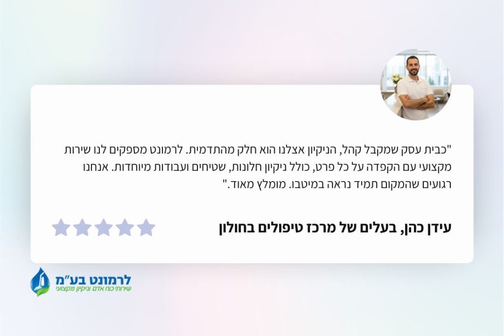 "הניקיון אצלנו הוא חלק מהתדמית. לרמונט מספקים שירות מקצועי עם הקפדה על כל פרט."